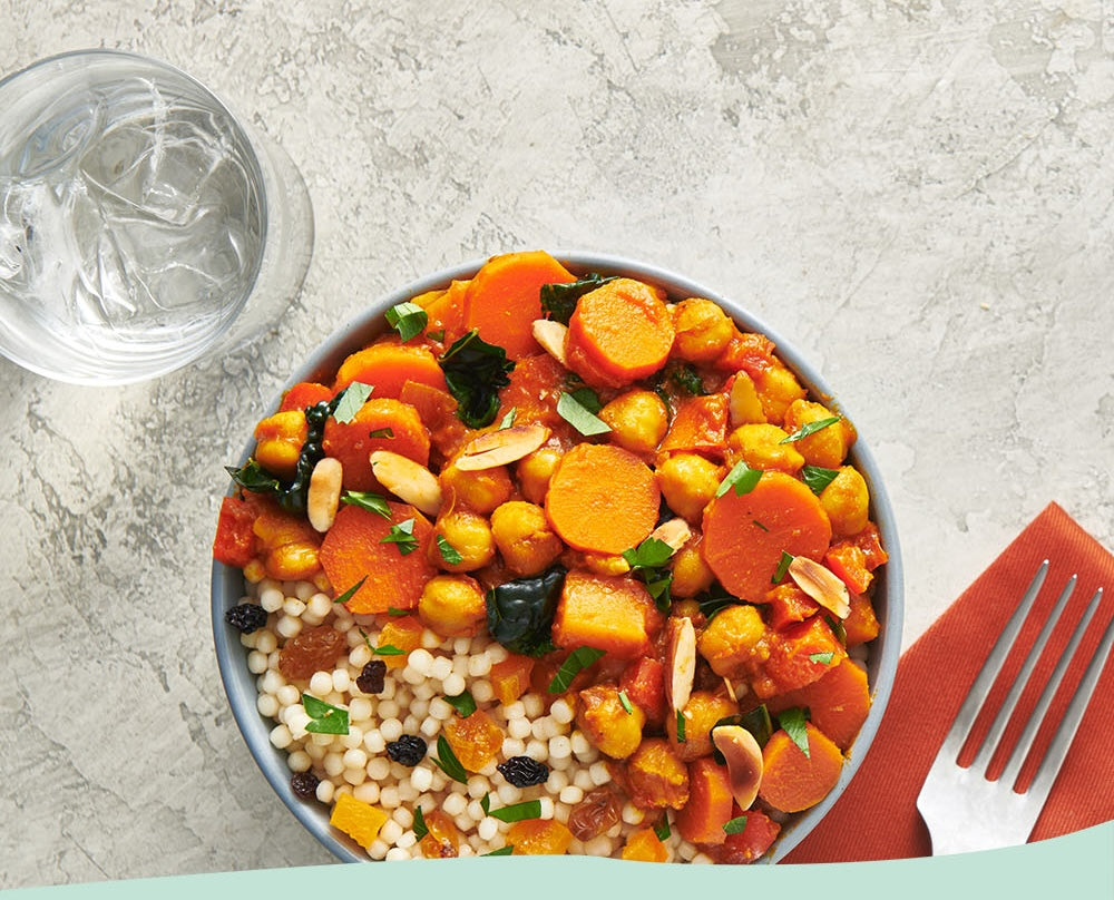 Here's something for you to stew on — literally. This bowl offers a savory blend of tomatoes, pumpkin, and spiced chickpeas, served over a combination of brown basmati rice and lentils to give you that warm, fuzzy, ‘mm, mm, good’ feeling. Coriander and turmeric-spiced cauliflower add even more plant-based power, and it's all topped off with a sprinkling of cilantro and toasted almonds. It’s all the veggies you love with a taste you won’t be able to resist.